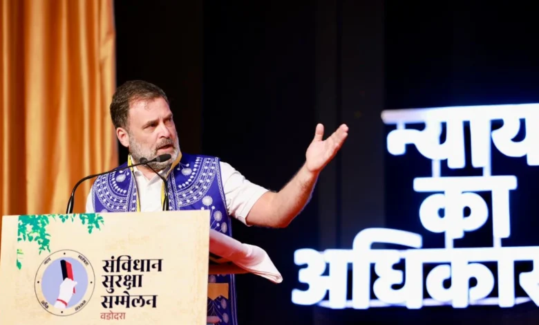 अपने हमला जारी रखते हुए राहुल ने कहा कि नरेंद्र मोदी ने ट्रेड डील कर भारत का कृषि सेक्टर अमेरिका के लिए खोल दिया। हमारे यहां छोटे खेत होते हैं, वहीं अमेरिका में हजारों एकड़ के बड़े खेत होते हैं। हमारे यहां लोग हाथ से काम करते हैं और वहां बड़ी मशीनों से काम होता है। अगर अमेरिका का माल भारत आने लगा तो हमारे किसान बर्बाद हो जाएंगे। हमें मिलकर संविधान की रक्षा करनी है। संविधान की रक्षा में ही हिंदुस्तान के आदिवासियों, गरीबों, मजदूरों की रक्षा है। अगर संविधान खत्म हो गया तो हमारे पास कुछ नहीं बचेगा।